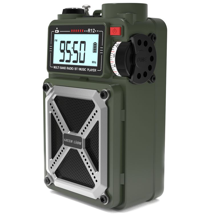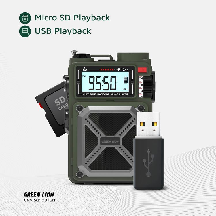 Green Lion Vintage Solar Pro Radio & Bluetooth Speaker with Power Bank, 12 Hours Playtime, 10m Transmission Range, 70 Lumens Flashlight, Hand Crank Charging, Micro SD & USB Playback - Green