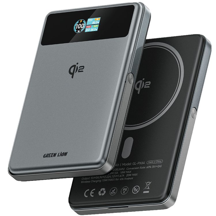 Green Lion Vista 10000mAh with Magsafe Compatible, PD20W Output, Flight Approved, Foldable Stand, Real-Time TFT Display, Built-in Kickstand - Black