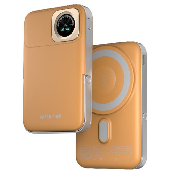 Green Lion Volt Gauge 10000mAh Power Bank with Dual USB-C Ports, ABS & PC Material, 15W Wireless Output, 22.5W Power Delivery, Flight Approved, Built-in Kickstand, Fast Charge Support - Orange