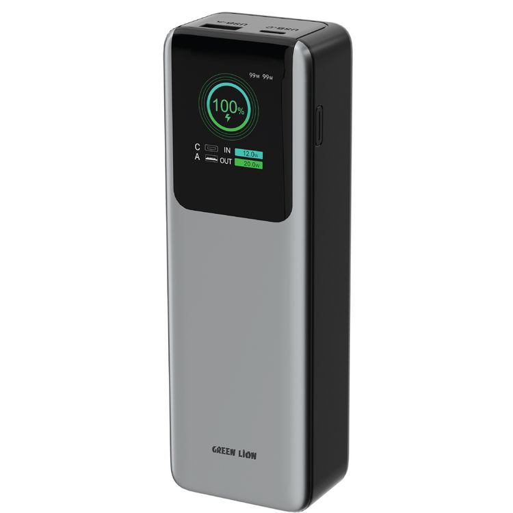 Green Lion Voltura 20000mAh Power Bank with TFT Display, Lightweight Design, Fast Charging, Wide Compatibility, Exquisite Appearance - Gray
