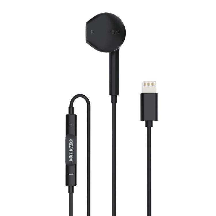 Green Lion Wired Mono Earphone with Lightning Connector, Control Buttons, 1.2m Cable Length, TPE & Copper Material, 14.2mm Speaker Size - Black