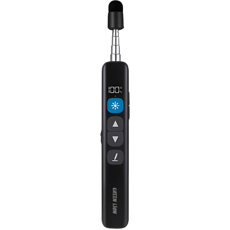 Green Lion Wireless Presenter with Retractable Pointer, Real-Time Power Display, 7 Programmable Keys, Up to 8 Hours Working Time, Compatible with Windows, Android & Linux, Built-in 2.4GHz Receiver, Countdown Reminder, Capacitive Pen Tip, Up to 100m Laser Distance & Up to 20m Working Distance - Black