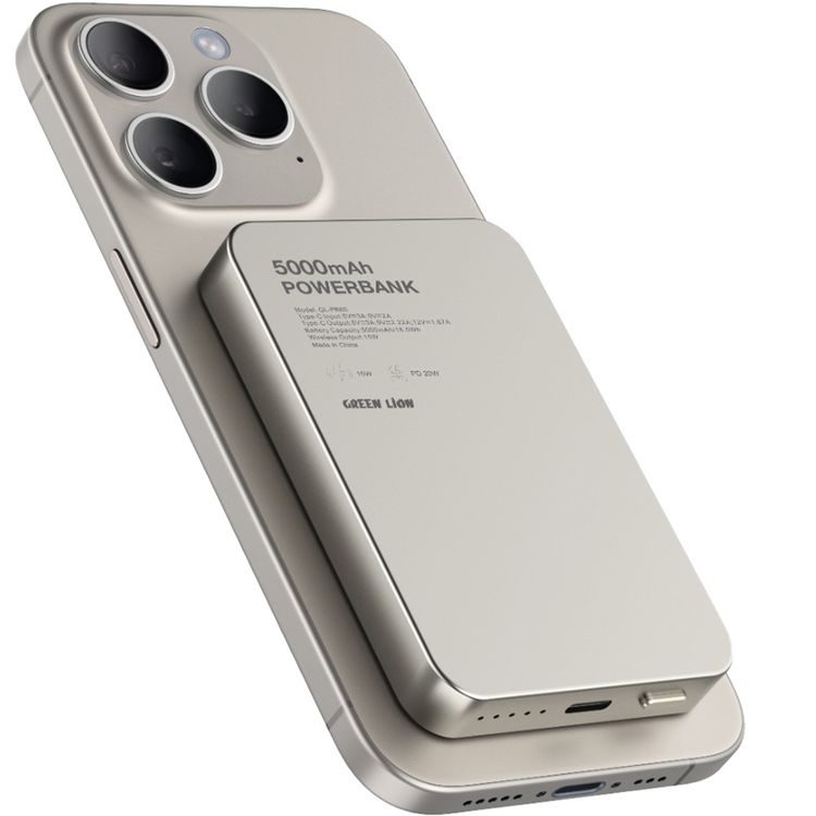 Green Lion GL-MAG 5000mAh Power Bank with 20W Power Delivery, MagSafe Charging, LED Indicator, 15W Wireless Charging, Slim Design - Titanium