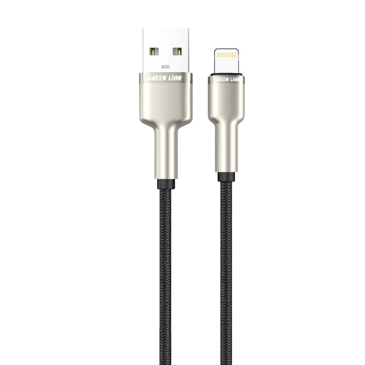 Green Lion USB-A to Lightning Cable, Fast Charging & Sync, Secure & Safe, 10000 Bends Life Span, Wide Compatibility, PD 10W - Black