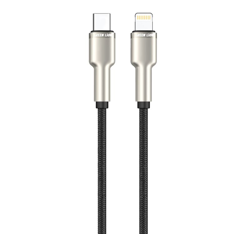 Green Lion USB-C to Lightning Cable, Fast Charging & Sync, Secure & Safe, 10000 Bends Life Span, Wide Compatibility, PD 27W - Black