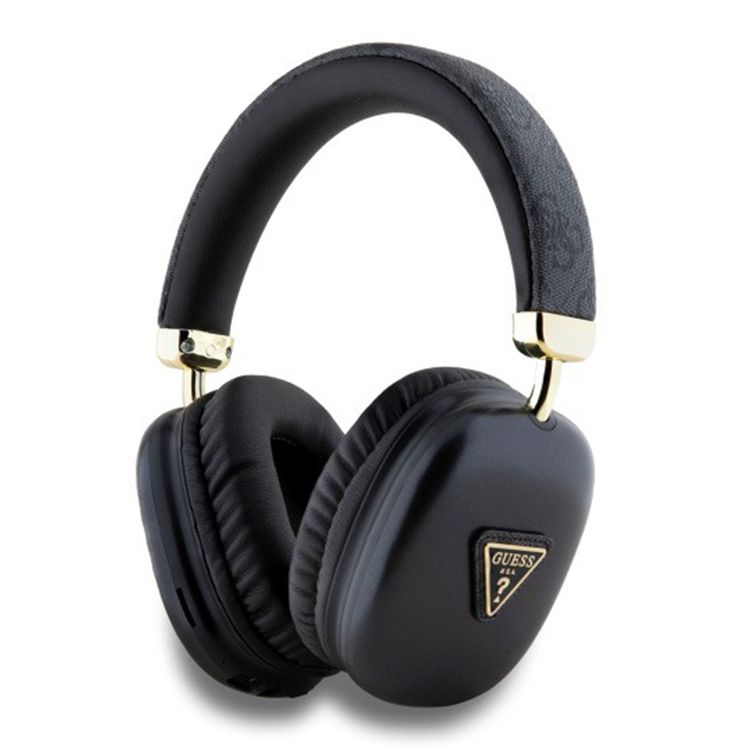 Guess 4G Bluetooth Headphones with Gold Triangle Logo, 32 Hours Playback Time, Fast Charging in just 2 hours, High-Quality Comfort Cushion, Track & Calls Control, Water Proof, Hands-free Calls, USB-C Connecting Port - Black