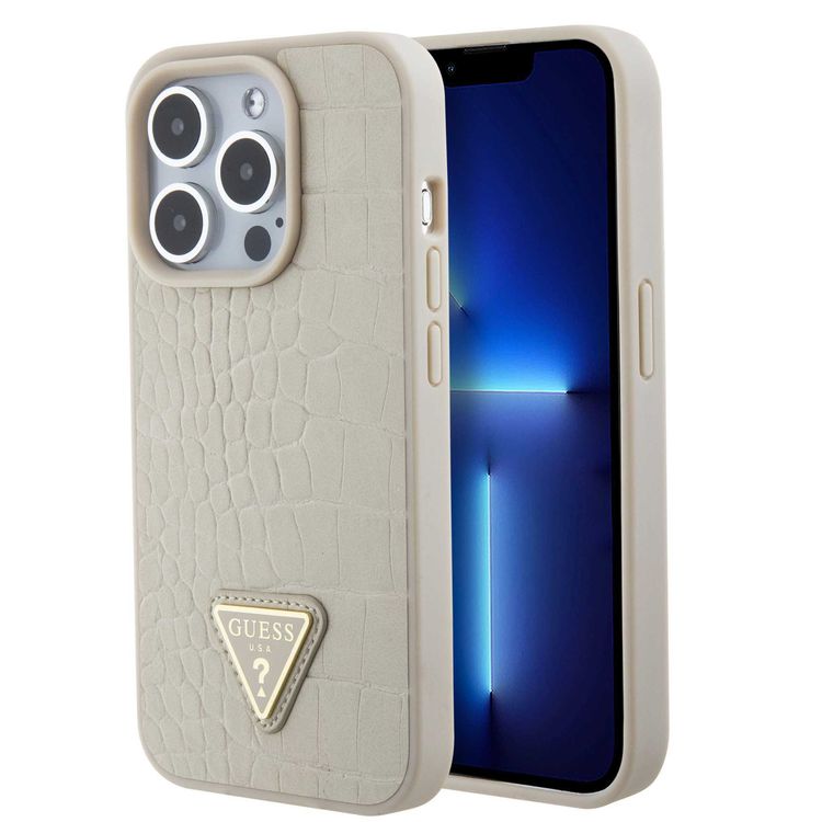 Guess Croco Case with Triangle Logo - Gold - iPhone 15 Pro Max