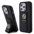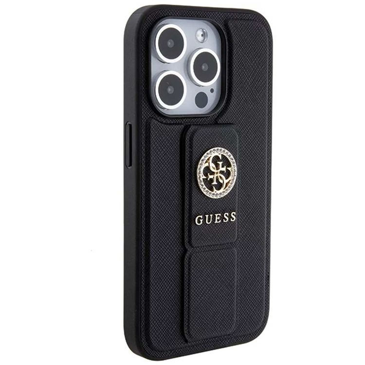 Guess Gripstand Saffiano Case with 4G Strass Metal Logo - Black - iPhone 15 Pro Max