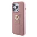 Guess Gripstand Saffiano Case with 4G Strass Metal Logo - Pink - iPhone 15 Pro Max
