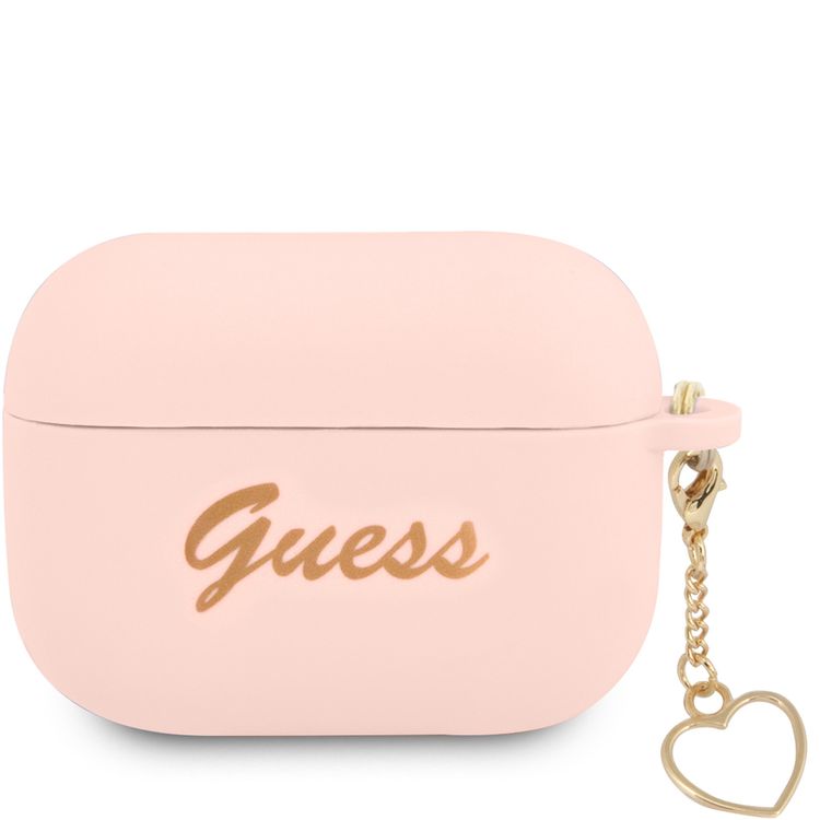 Guess GUAPLSCHSP Silicone Case for Apple Airpods Pro , Charm Collection with Anti-Lost Heart Ring , Officially Licensed - Pink
