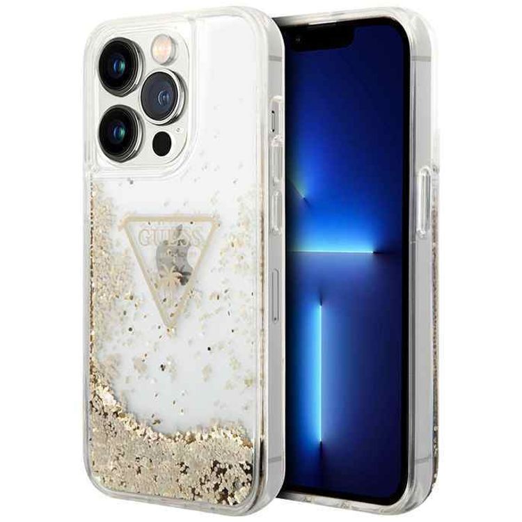 Guess HC Liquid Glitter Case with Triangle Guess Logo - Transparent - iPhone 15 Pro