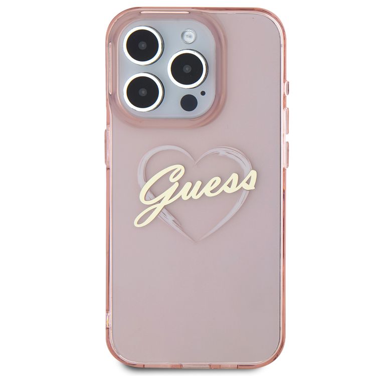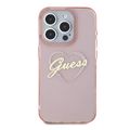 GUESS IML Hard Case with Heart Logo for iPhone 16 Pro, Slim Profile, Easy Snap-On, Comfortable Grip, Accurate Cutouts, Shock-Absorption, Drop & Bumper Protection - Pink