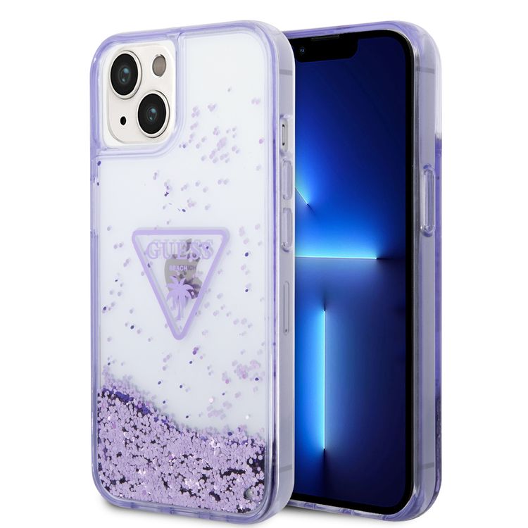 Guess Liquid Glitter Case With Translucent Triangle Logo - iPhone 14 - Purple