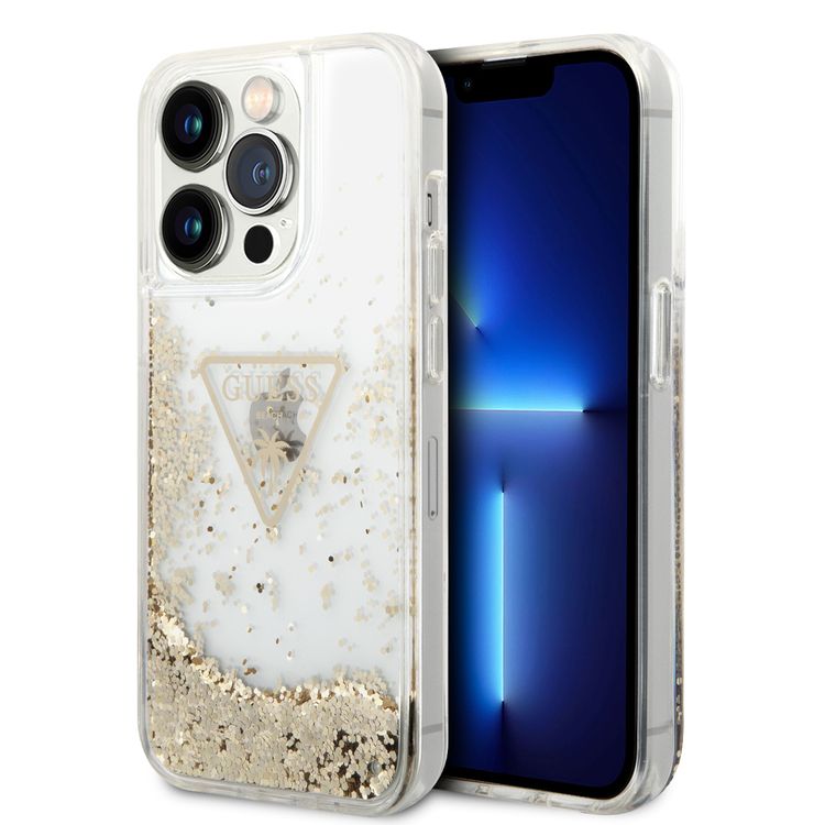 Guess Liquid Glitter Case With Translucent Triangle Logo - iPhone 14 Pro - Transparent