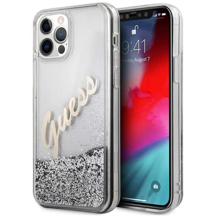 Guess Liquid Glitter Script Hard Case for iPhone 12 / 12 Pro ( 6.1" ) - Silver