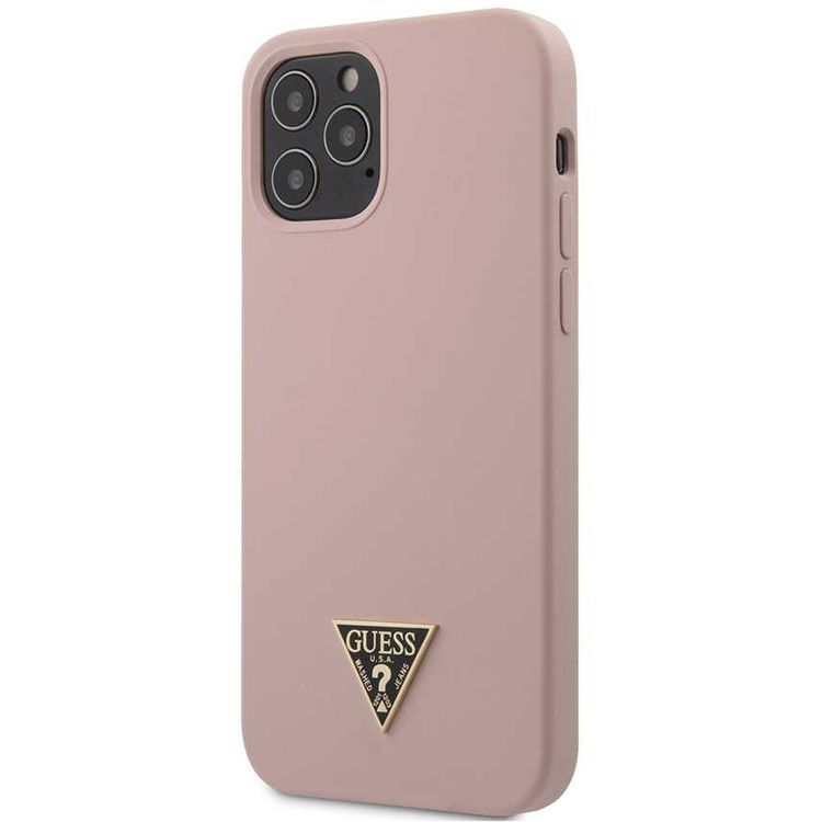 Guess Liquid Silicone Case w/ Metal Logo for iPhone 12 / 12 Pro (6.1") - Pink