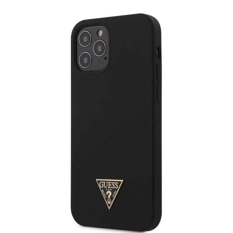 Guess Liquid Silicone Case w/ Metal Logo for iPhone 12 / 12 Pro (6.1") - Black