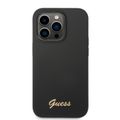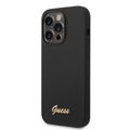Guess Liquid Silicone Case With PC Camera Outline & Script Metal Logo - iPhone 14 Pro - Black
