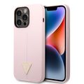 Guess Liquid Silicone Case with Shiny Line & Metal Triangle Tone Logo iPhone 14 Pro Compatibility - Purple