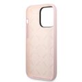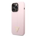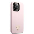 Guess Liquid Silicone Case with Shiny Line & Metal Triangle Tone Logo iPhone 14 Pro Max Compatibility - Purple