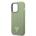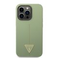 Guess Liquid Silicone Case with Shiny Line & Metal Triangle Tone Logo iPhone 14 Pro Max Compatibility - Green