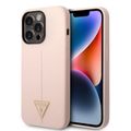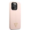 Guess Liquid Silicone Case with Shiny Line & Metal Triangle Tone Logo iPhone 14 Pro Max Compatibility - Pink