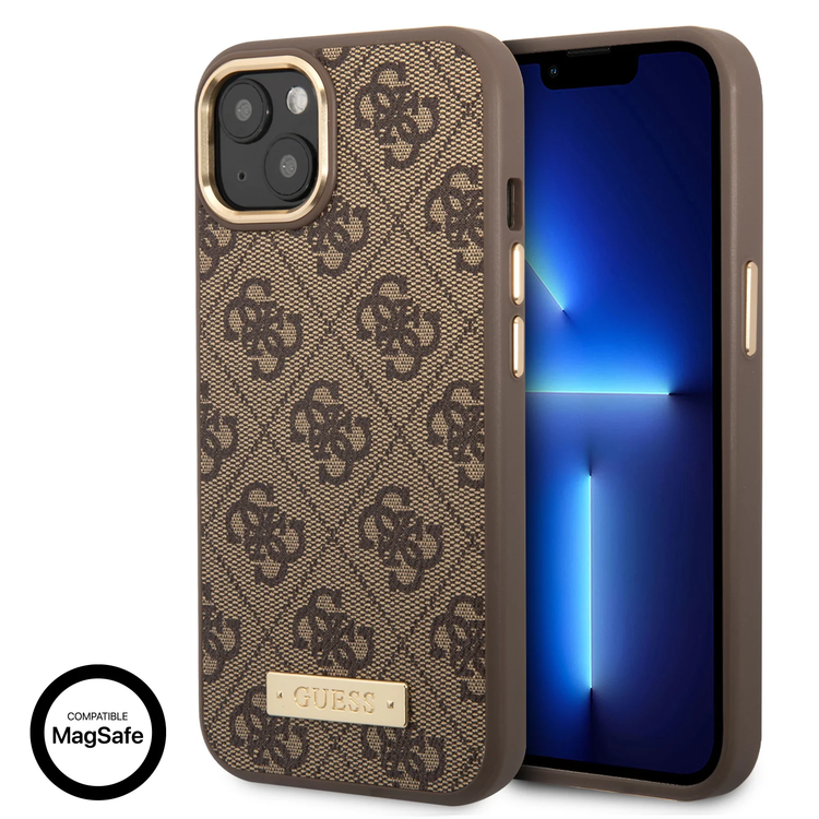 Guess Magsafe 4G PU Case With Metal Plate Logo - iPhone 14 Plus - Brown