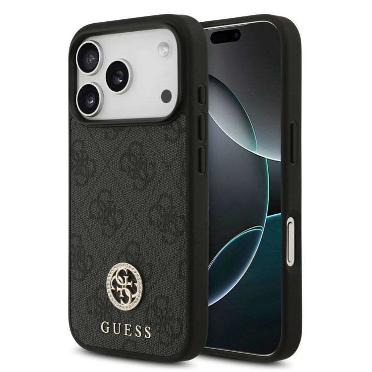 Guess MagSafe 4G PU Leather Case with Classic & Strass Logo for iPhone 17 Pro Max, Lightweight Design, Drop Protection, Easy Snap-On, Slim Profile, Sustainable Packaging, Comfortable Grip - Black