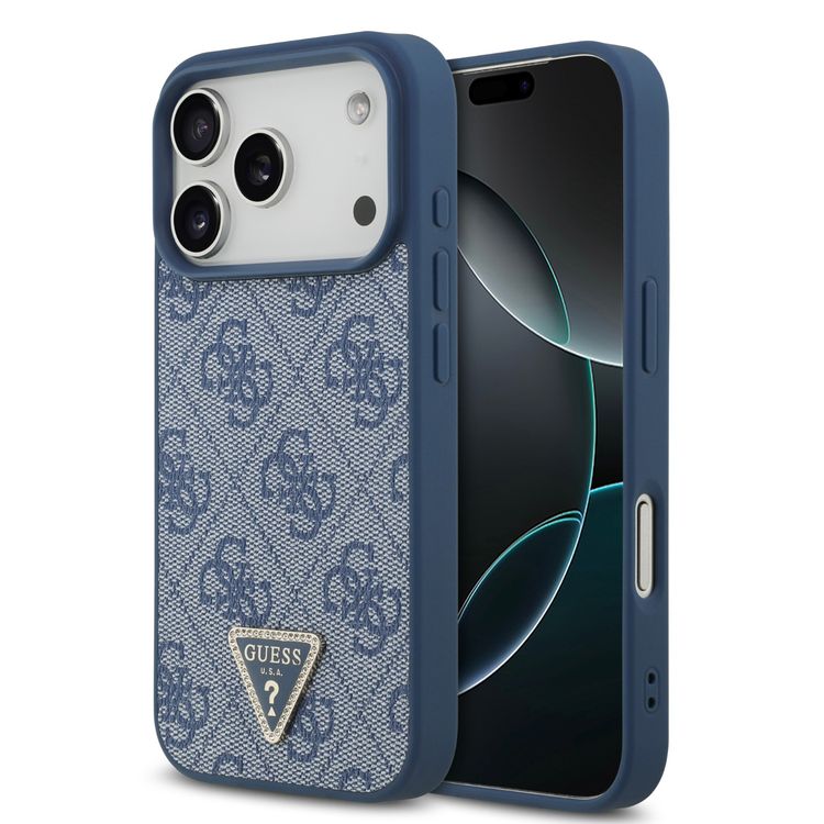 Guess MagSafe 4G PU Leather Case with Triangle Logo for iPhone 17 Pro Max, Slim Profile, Drop Protection, Comfortable Grip, Sustainable Packaging, Lightweight Design, Easy Snap-On - Blue