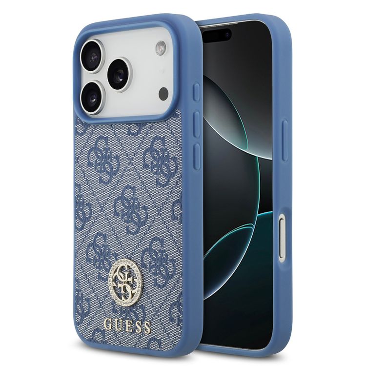 Guess MagSafe 4G PU Leather Case with Classic & Strass Logo for iPhone 17 Pro, Lightweight Design, Drop Protection, Easy Snap-On, Slim Profile, Sustainable Packaging, Comfortable Grip - Blue