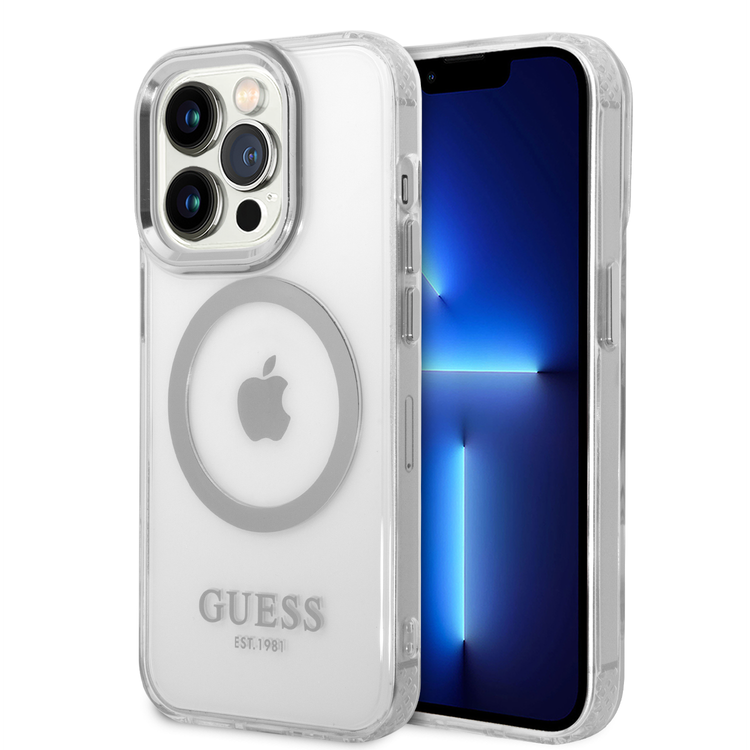 Guess Magsafe Compatibility Transparent Outline iPhone 14 Pro Max Compatibility - Silver