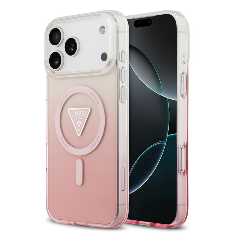 Guess MagSafe IML Gradient Case with Printed Triangle Logo for iPhone 17 Pro Max, Slim Profile, Drop Protection, Lightweight Design, Comfortable Grip, Sustainable Packaging, Easy Snap-On - Pink