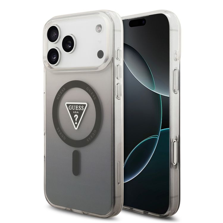 Guess MagSafe IML Gradient Case with Printed Triangle Logo for iPhone 17 Pro, Slim Profile, Drop Protection, Lightweight Design, Comfortable Grip, Sustainable Packaging, Easy Snap-On - Black
