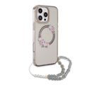 Guess Magsafe IML Hard Case for iPhone 16 Pro with Flower Wreath Design & Pearl Strap, Lightweight, Comfortable Grip, Drop Protection -Black