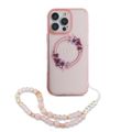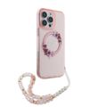 Guess Magsafe IML Hard Case for iPhone 16 Pro Max with Flower Wreath Design & Pearl Strap, Lightweight, Comfortable Grip, Drop Protection -Pink