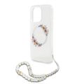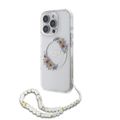 Guess Magsafe IML Hard Case for iPhone 16 Pro with Flower Wreath Design & Pearl Strap, Lightweight, Comfortable Grip, Drop Protection -Clear