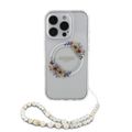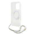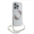 Guess Magsafe IML Hard Case for iPhone 16 Pro Max with Flower Wreath Design & Pearl Strap, Lightweight, Comfortable Grip, Drop Protection - Clear