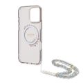 Guess Magsafe IML Hard Case for iPhone 16 Pro Max with Flower Wreath Design & Pearl Strap, Lightweight, Comfortable Grip, Drop Protection -Black