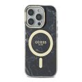 Guess Magsafe IML Hard Case with Marble Design for iPhone 16 Pro, Comfortable Grip, Easy Snap-On, Precise Port Cutouts - Black