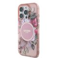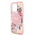 Guess Magsafe IML Transparent Hard Case with Flower Design & Tonal Circle Logo for iPhone 16 Pro Max, Lightweight, High Quality Material - Pink