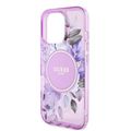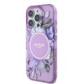 Guess Magsafe IML Transparent Hard Case with Flower Design & Tonal Circle Logo for iPhone 16 Pro Max, Lightweight, High Quality Material - Purple