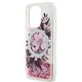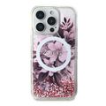 GUESS MagSafe Liquid Glitter Hard Case with Flower Design for iPhone 16 Pro Max, Drop Protection, Accurate Cutouts, Shock-Absorption, Slim Profile - Pink
