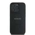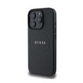 Guess Magsafe PU Grained with Gold Ring and Logo Case for iPhone 16 Pro, High Quality Material, Comfortable and Secure Grip, Lightweight - Black