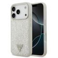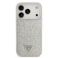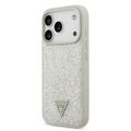Guess MagSafe PU Leather Fixed Glitter Case with Triangle Logo for iPhone 17 Pro, Slim Profile, Easy Snap-On, Sustainable Packaging, Comfortable Grip, Drop Protection, Lightweight Design - Silver