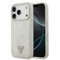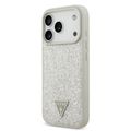 Guess MagSafe PU Leather Fixed Glitter Case with Triangle Logo for iPhone 17 Pro Max, Slim Profile, Easy Snap-On, Sustainable Packaging, Comfortable Grip, Drop Protection, Lightweight Design - Silver