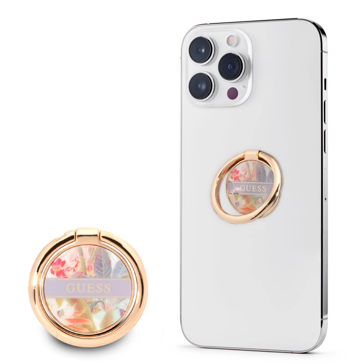 Guess Metal Ring Stand 4G, Compatible with All Smartphone - Flower Purple