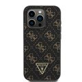 Guess New 4G Design PU Leather Case with Triangle Logo for iPhone 16 Pro Max, Easy Snap-on, Camera Raised Edge - Black