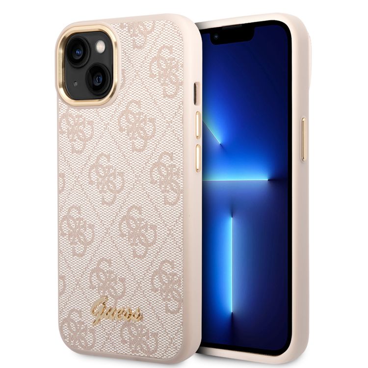 Guess PC/TPU 4G PU Case with Metal Camera Outline & Buttons iPhone 14 Compatibility - Pink