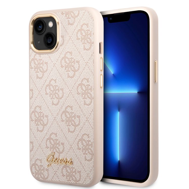Guess PC/TPU 4G PU Case with Metal Camera Outline & Buttons iPhone 14 Plus Compatibility - Pink