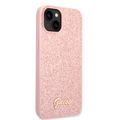 Guess PC/TPU Glitter Flakes Case with Script Metal Logo iPhone 14 Compatibility - Pink